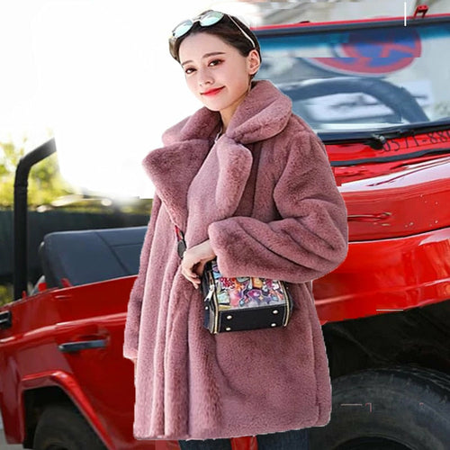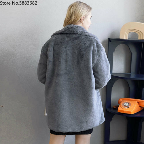 2022 Autumn Winter New Women Faux Fur Coat Elegant Fluffy Thick Warm