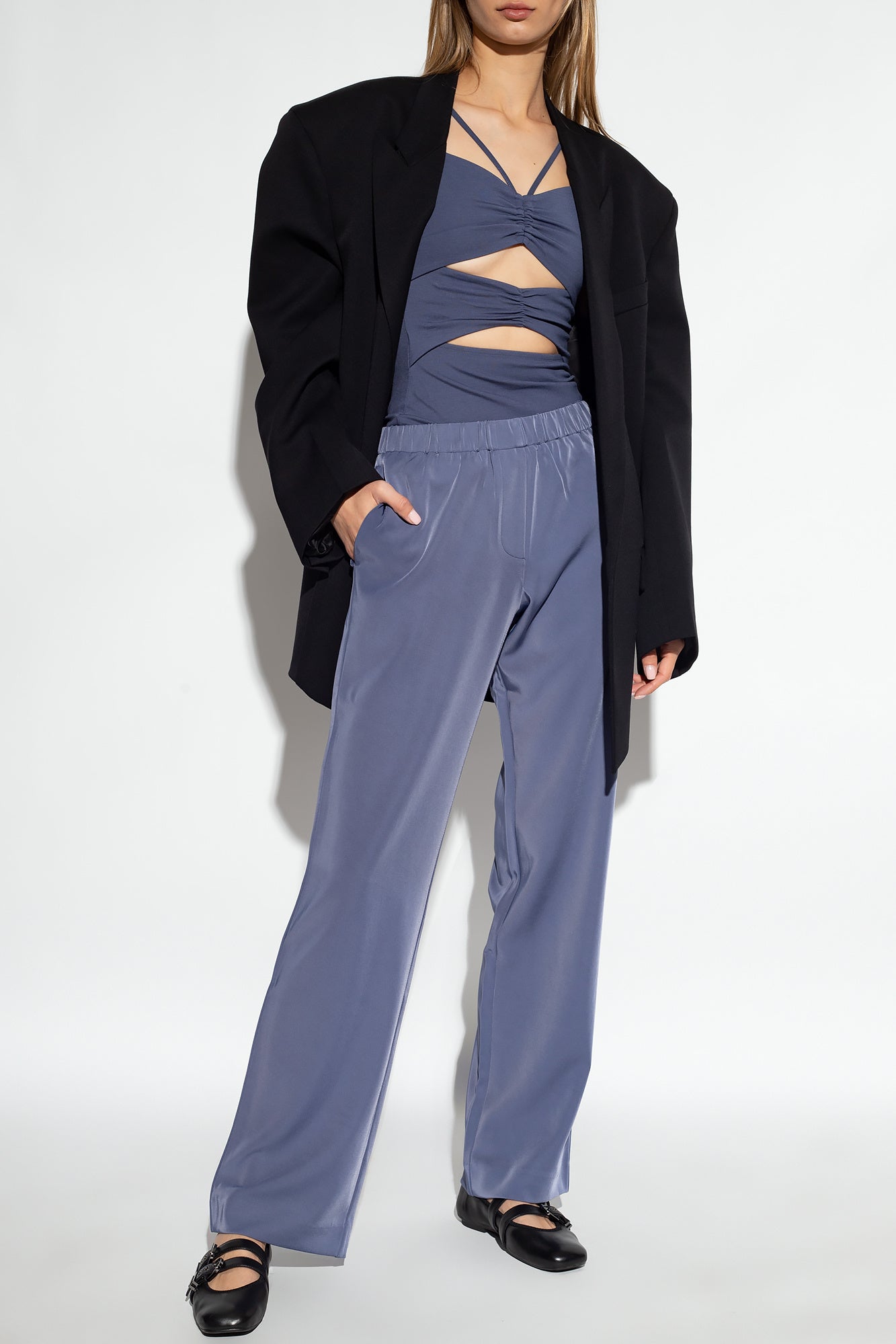 Description : Dark blue, Mona sleeveless top with adjustable shoulder straps as