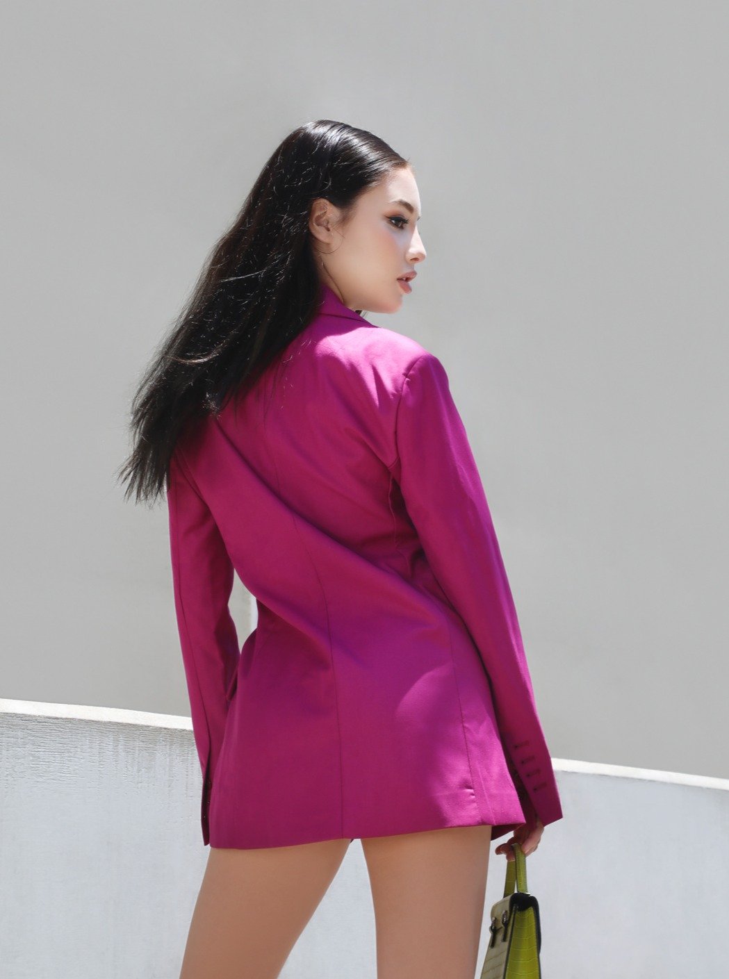 No matter your agenda, get ready to run the world in our chic blazer dress. In a structured meets feminine appeal, this boss babe blazer dress has a plunging neckline with a notched lapel, button-down front, flap pockets and a hemline that finishes at the upper thigh. Cinches at the waist create an incredibly flattering silhouette, while its deep fuchsia hue puts it at a level all its own – it’s power dressing at its finest.