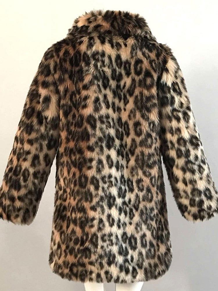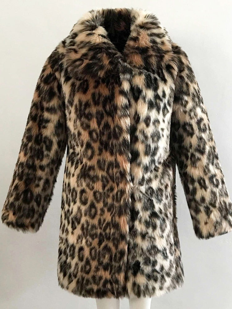Leopard Print Faux Fur Coat Women 2022 Winter Long Sleeve Turn-down