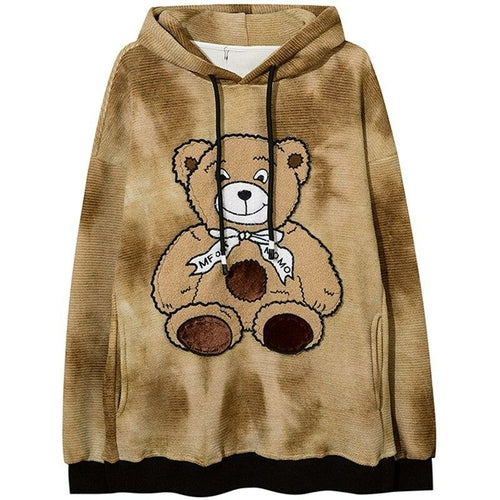 Hoodie Men Furry Cute Bear Patch Fleece Hooded Pullover Oversized