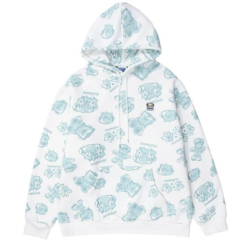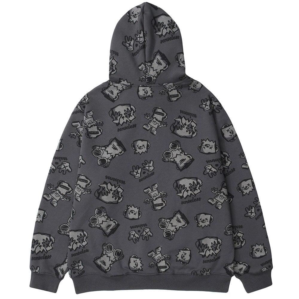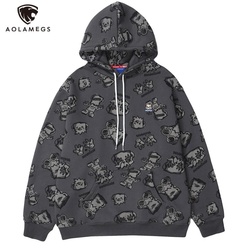 Hoodie Men Japanese Cartoon Print Fleece Hooded Pullover Oversize Harajuku Vintage High Street Couple Sweatshirt Autumn