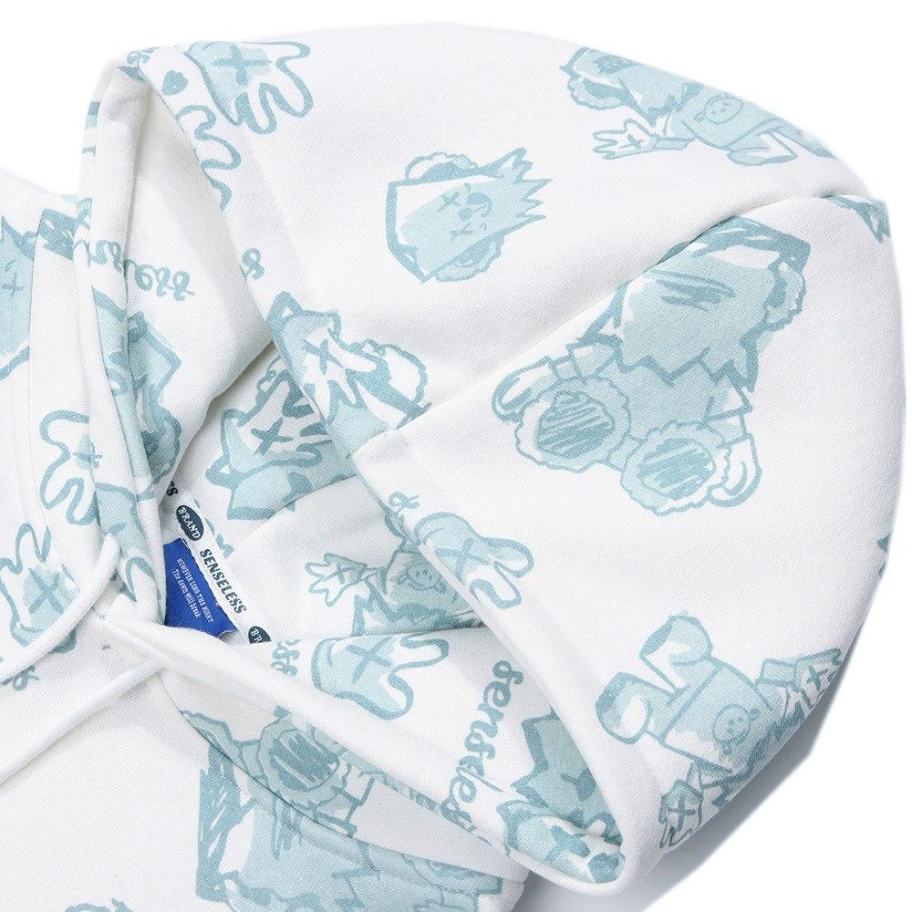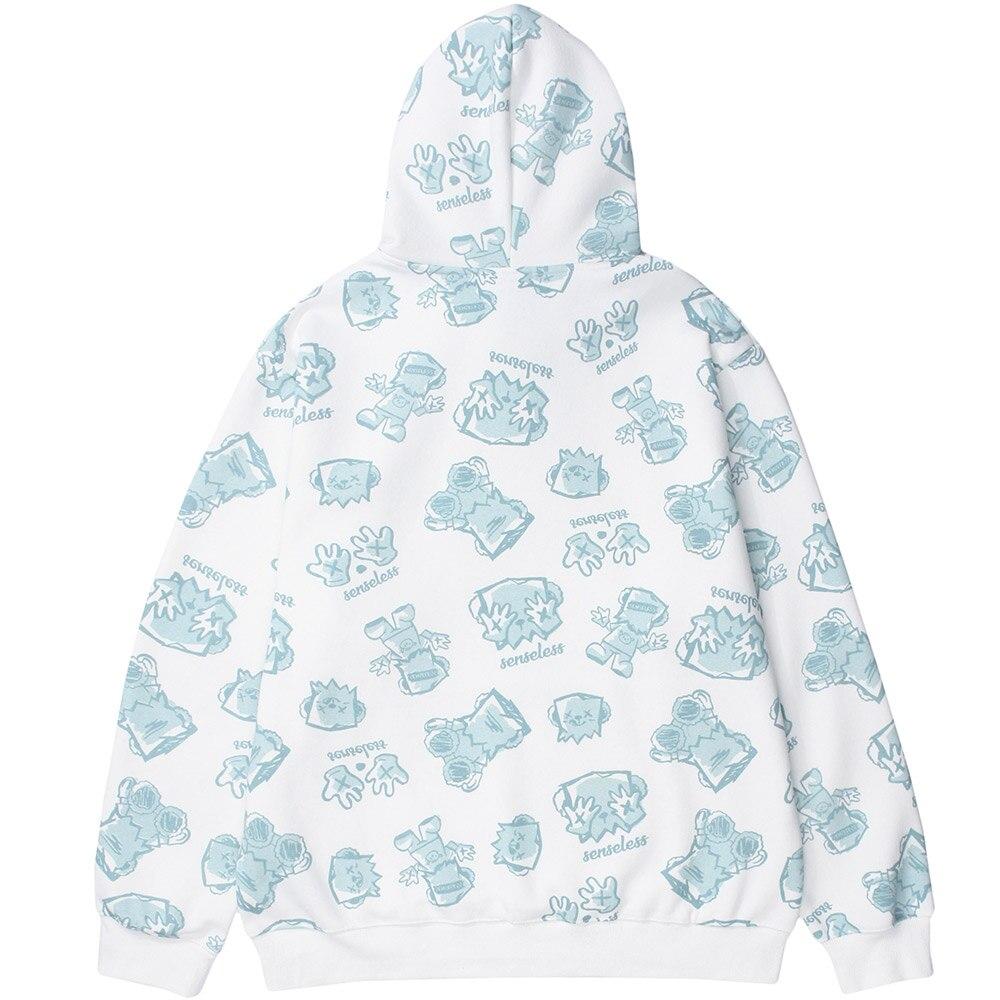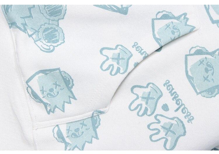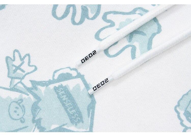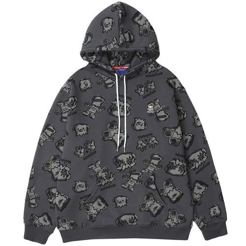 Hoodie Men Japanese Cartoon Print Fleece Hooded Pullover Oversize