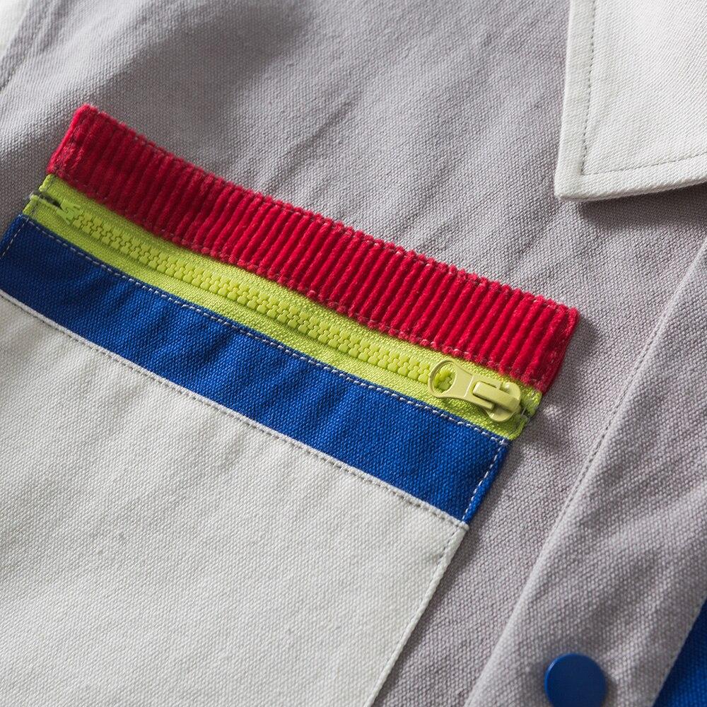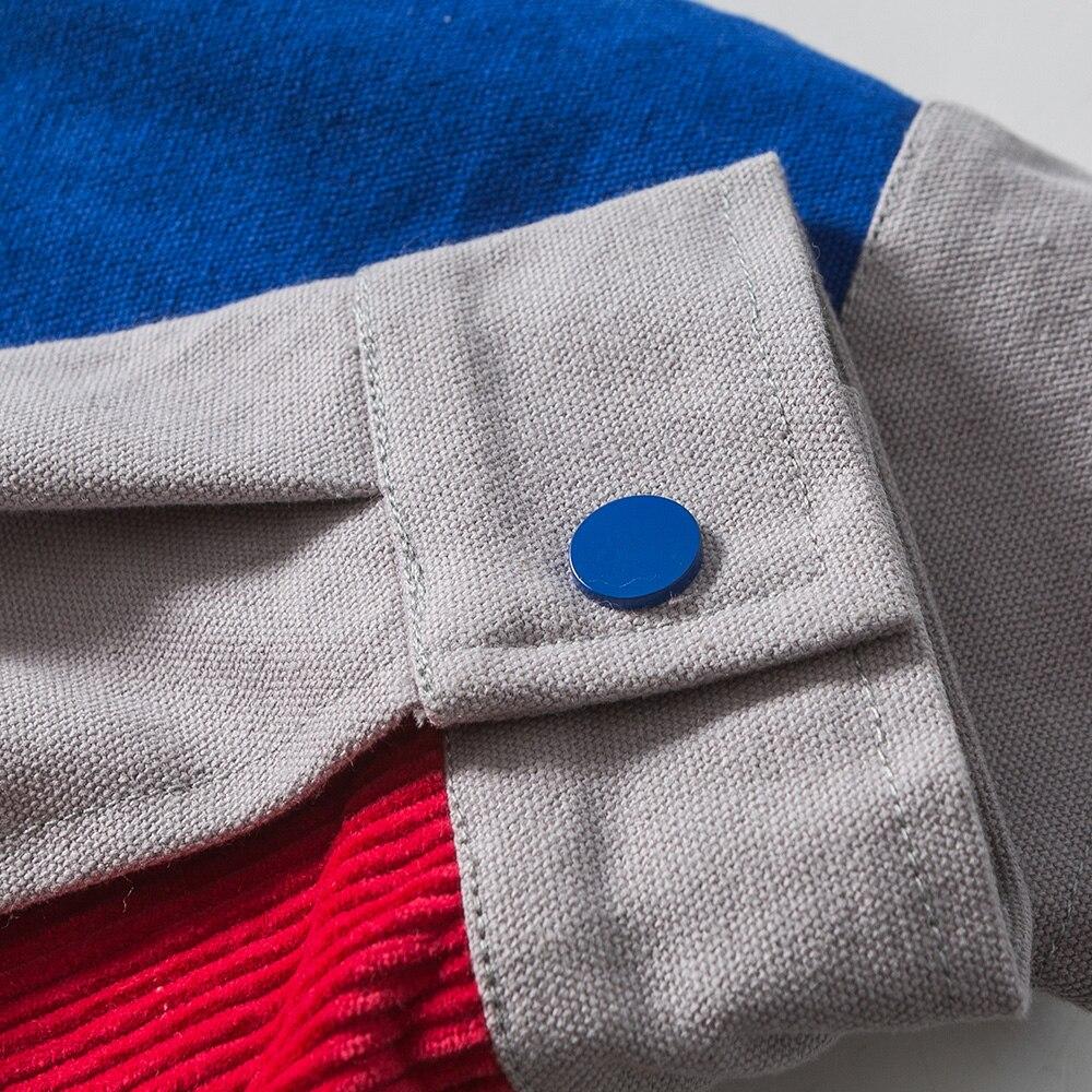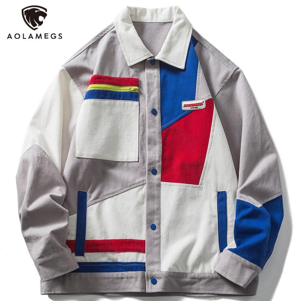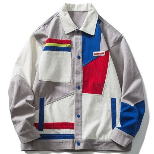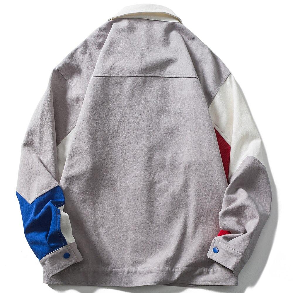 Jacket Men Colorful Patchwork Zipper Pocket Outwear Autumn Baggy