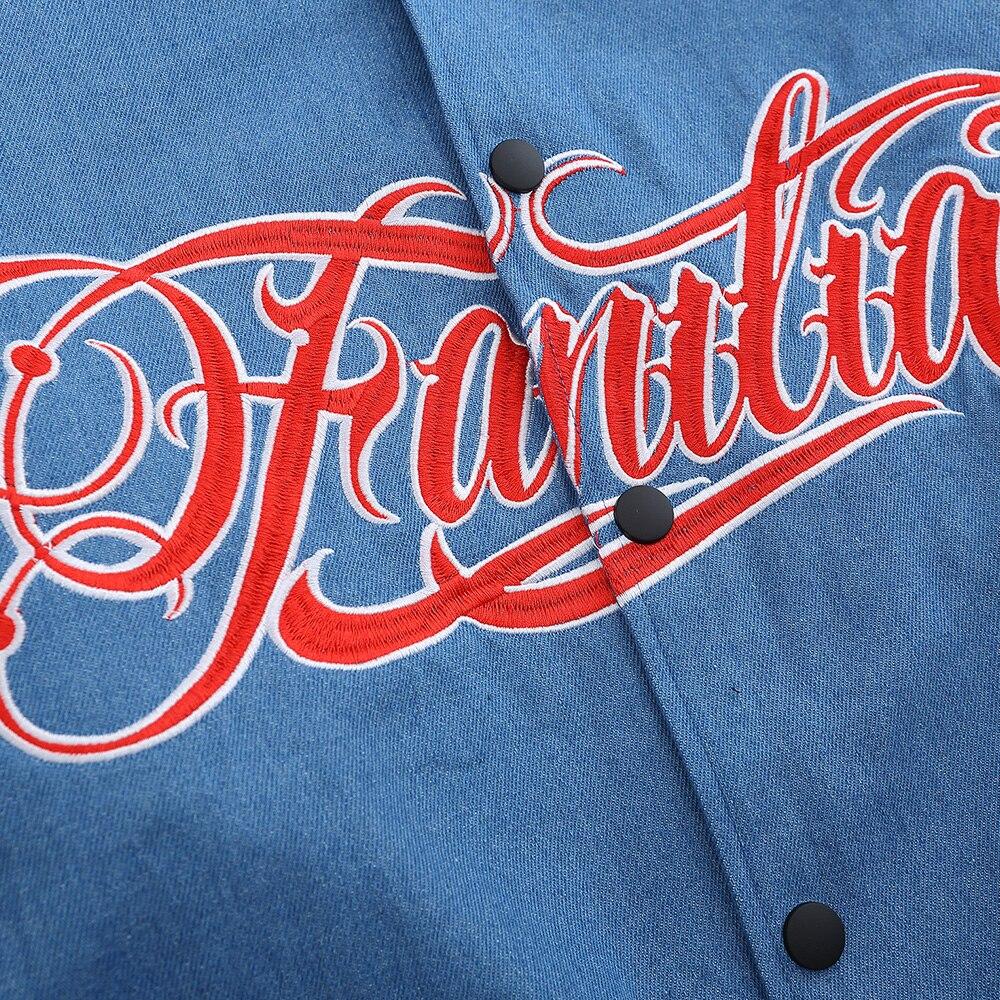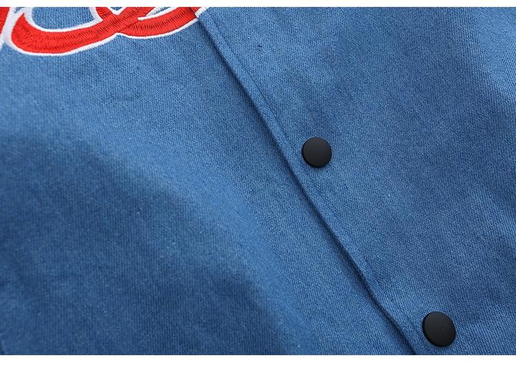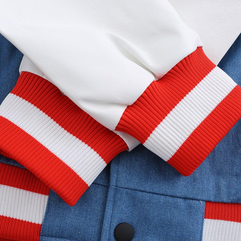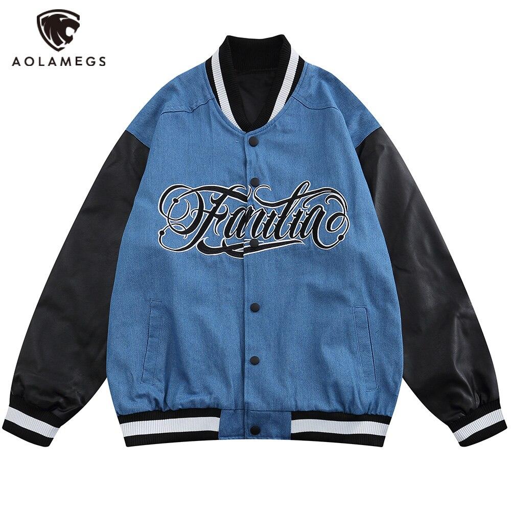 Jacket Men Denim Leather Patchwork Color Letter Embroidery Baggy