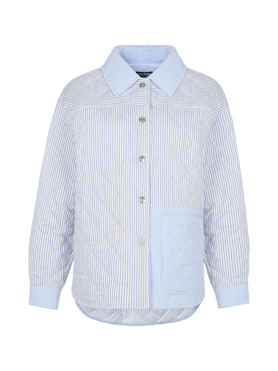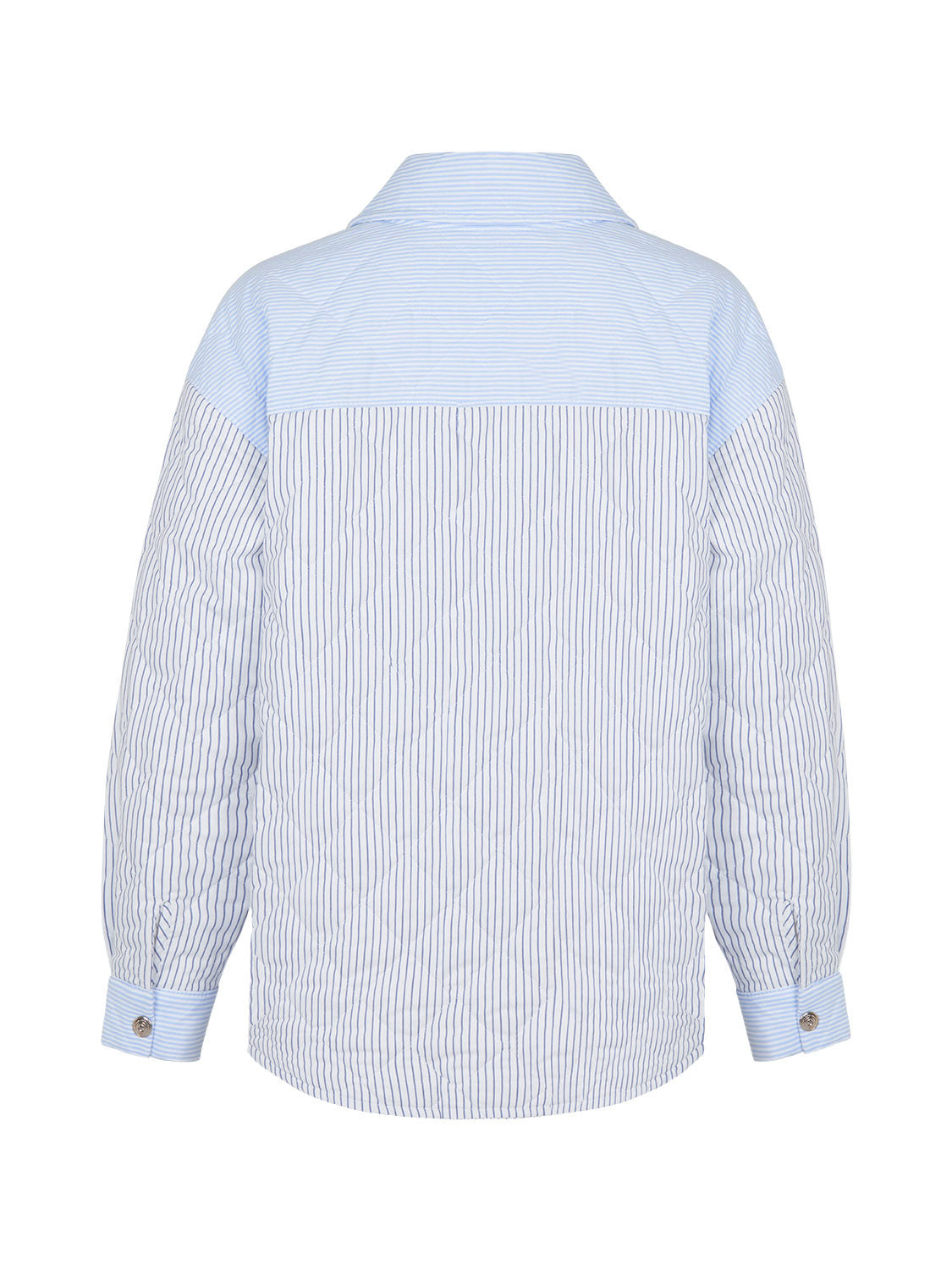 Oversized jacket with long sleeves and snap button cuffs. Front snap button closure and patch pocket.