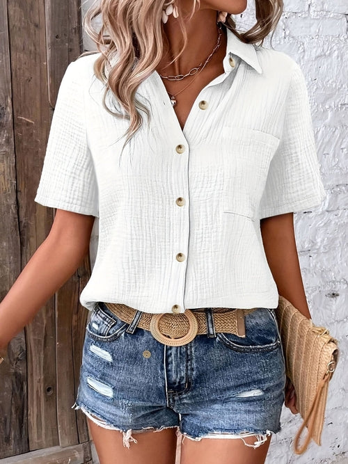 Summer Women V-Neck Blouse - Casual Short Sleeve Button-Up Shirt With