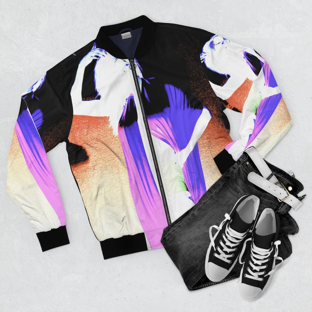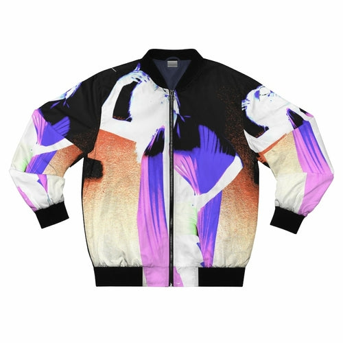 - Unisex all-over print jacket with ribbed stand-up collar, elastic cuffs, and elasticized hem. Featuring the classic bomber jacket look, a durable zipper and two pouch pockets, this jacket is ready to take your everyday look a notch higher to reflect your unique personality and style.