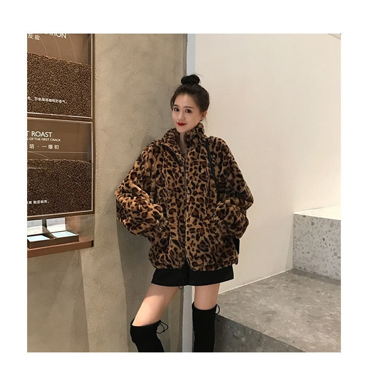 Winter Leopard Print Jacket Women's Stand collar Warm Parkas Outwear 2022 New Autumn Winter Korean Female Loose Faux Fur CoatsDecoration: Pockets,ZippersFabric Type: BlendedCraft\Technics: KnittedMaterial: Faux Fur,Faux LeatherStyle: CasualStyle: Patchwork FurGender: WOMENClothing Length: ShoType: Wide-waistedCollar: Turn-down CollarClosure Type: zipperSleeve Style: RegularModel Number: Female Faux Fur CoatSeason: WinterSleeve Length(cm): FullOuterwear Type: Fur & Faux FurRelease